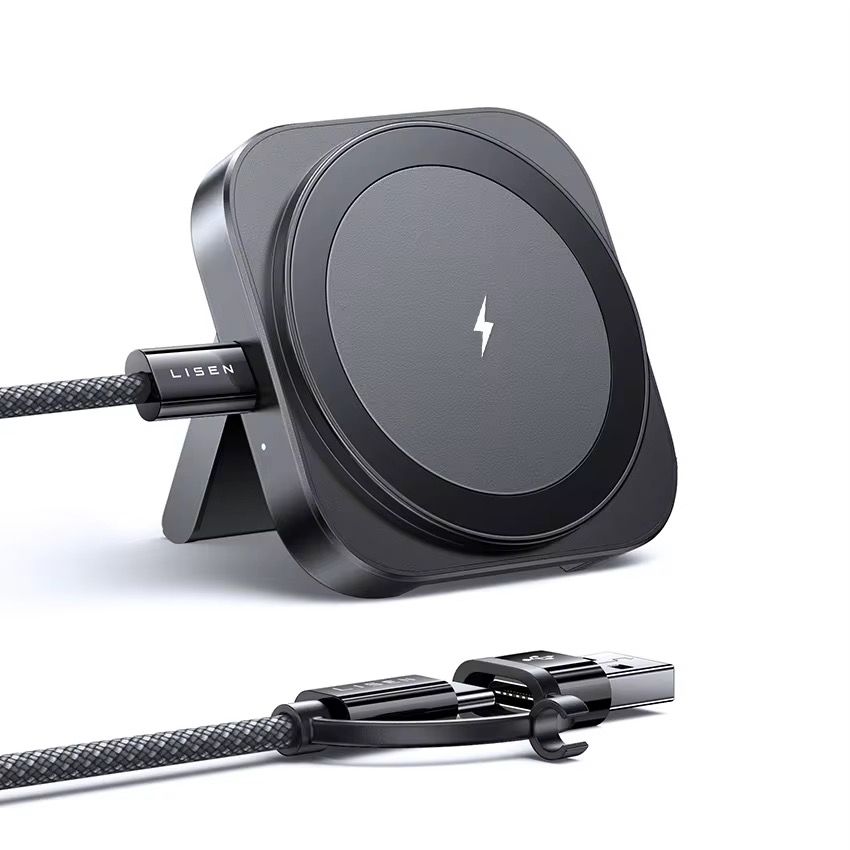 شاحن لاسلكي صغير الحجم وقابل للطي، الحل الأمثل للشحن السريع أثناء التنقل! يتميز بتصميمه المدمج الذي يجعله يناسب الجيب أو الحقيبة بسهولة، مع أداء قوي في الشحن اللاسلكي.